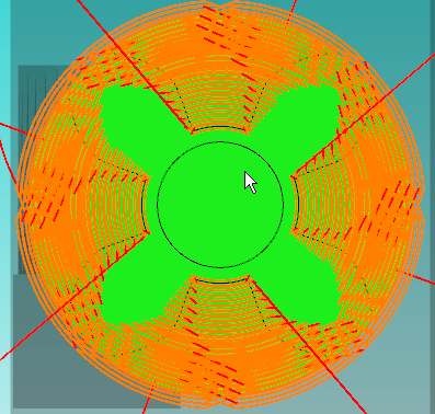 Rotate the drawing around and watch the center profile, see the way the toolpath wraps around the center