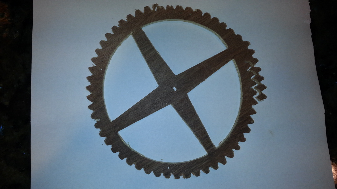 You asked of time, a 5" gear in .25" plywood would take my Mach3 wood router mill about 5-10 minutes typically,depending on depth