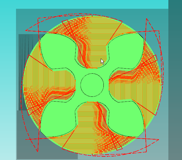 Youll notice now the rooting doesnt try to cut outside the blank at all, the tangential passes no longer move the Z