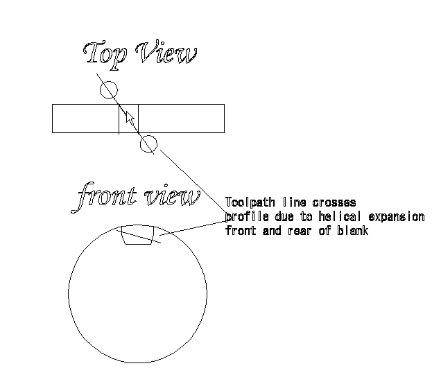Hmm, best I draw this point, its a hard one to word.. look to the photo below. The top shot is the helical, to machine its helix properly the toolpath has to start outside the profile and end outside the profile because the tool must start in front and end in the back with the same angular offset. Its why I keep saying its an optical illusion that the profile