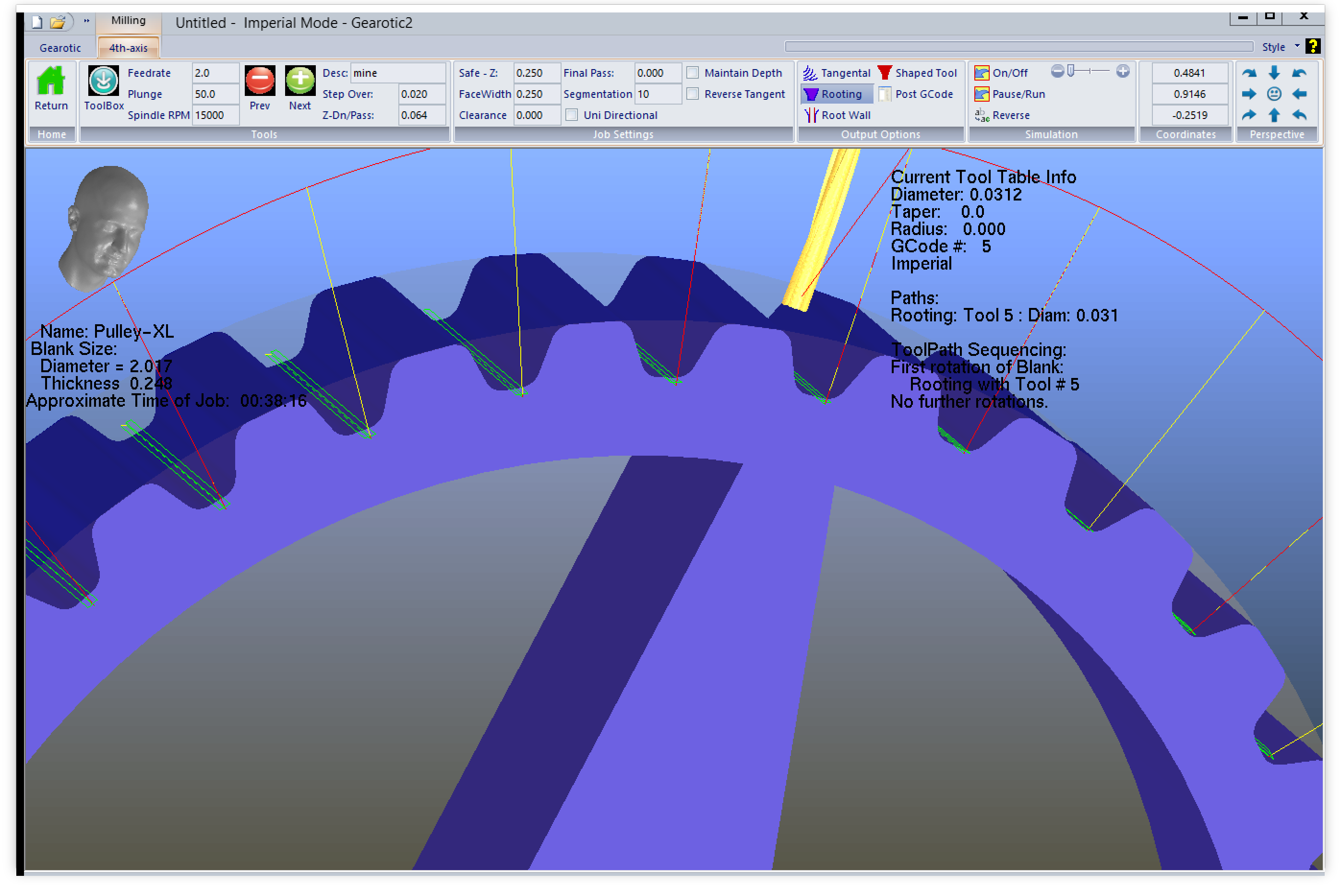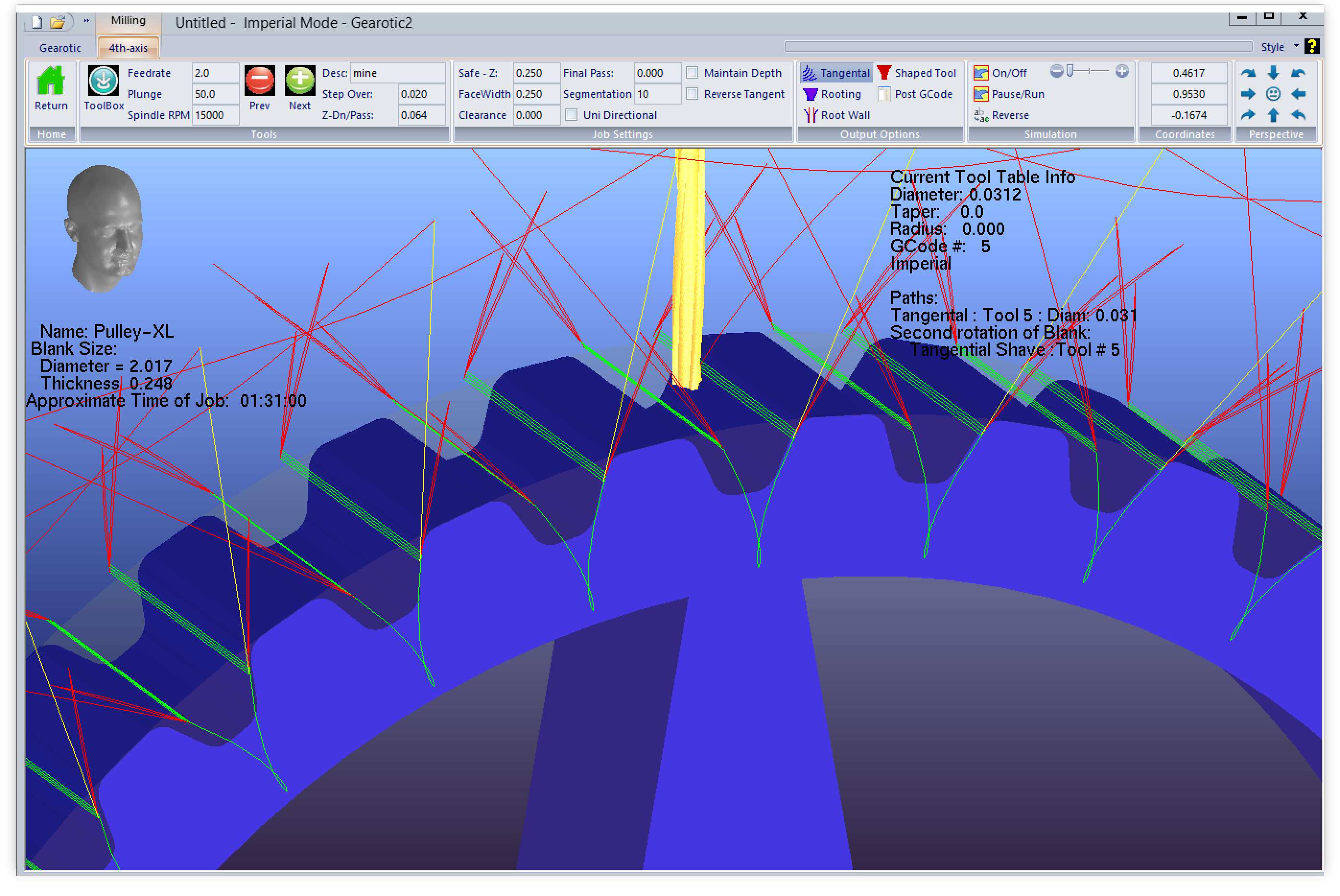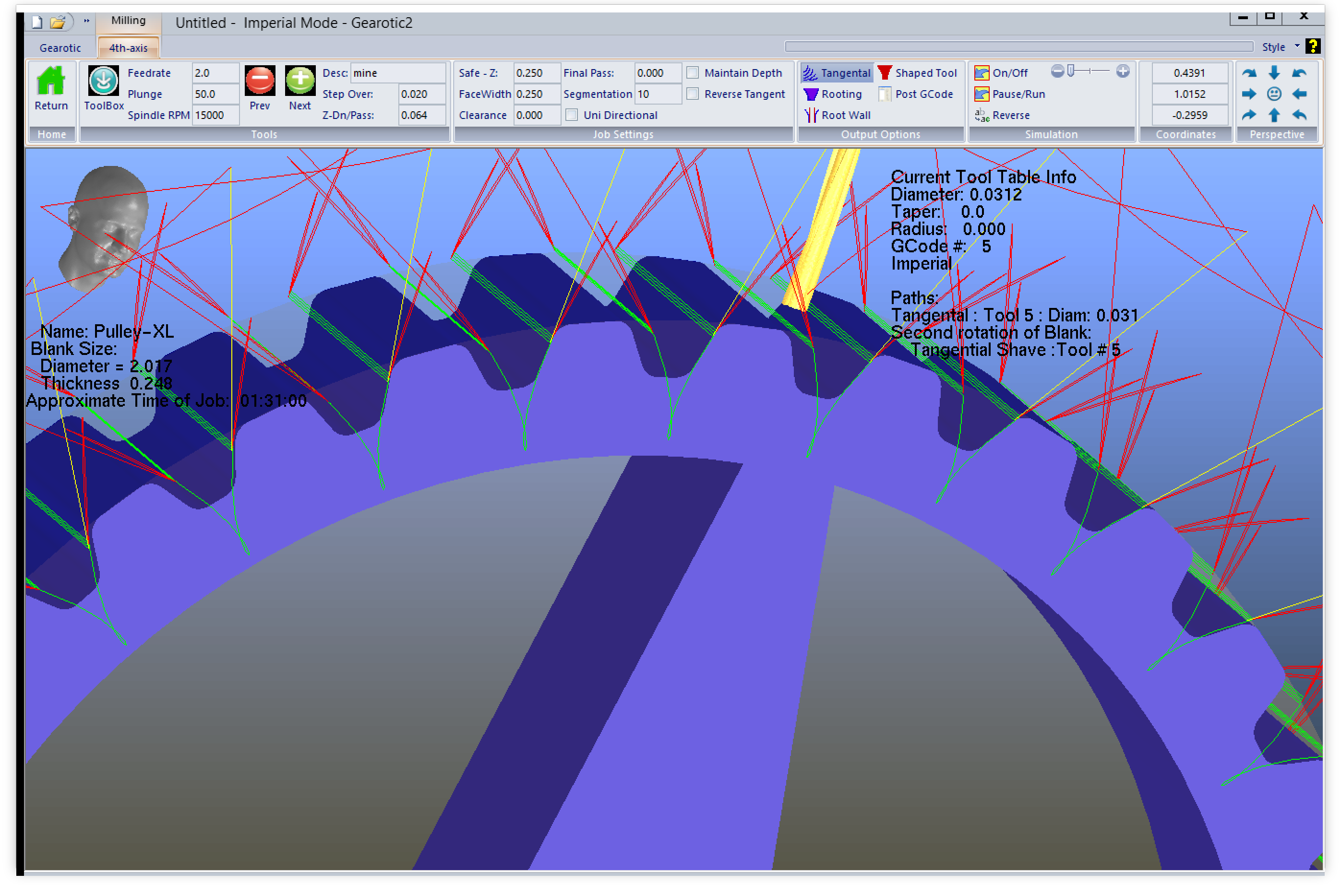 But generally, ignore tool size warnings in 4th axis with pulleys, the tool size calc is done