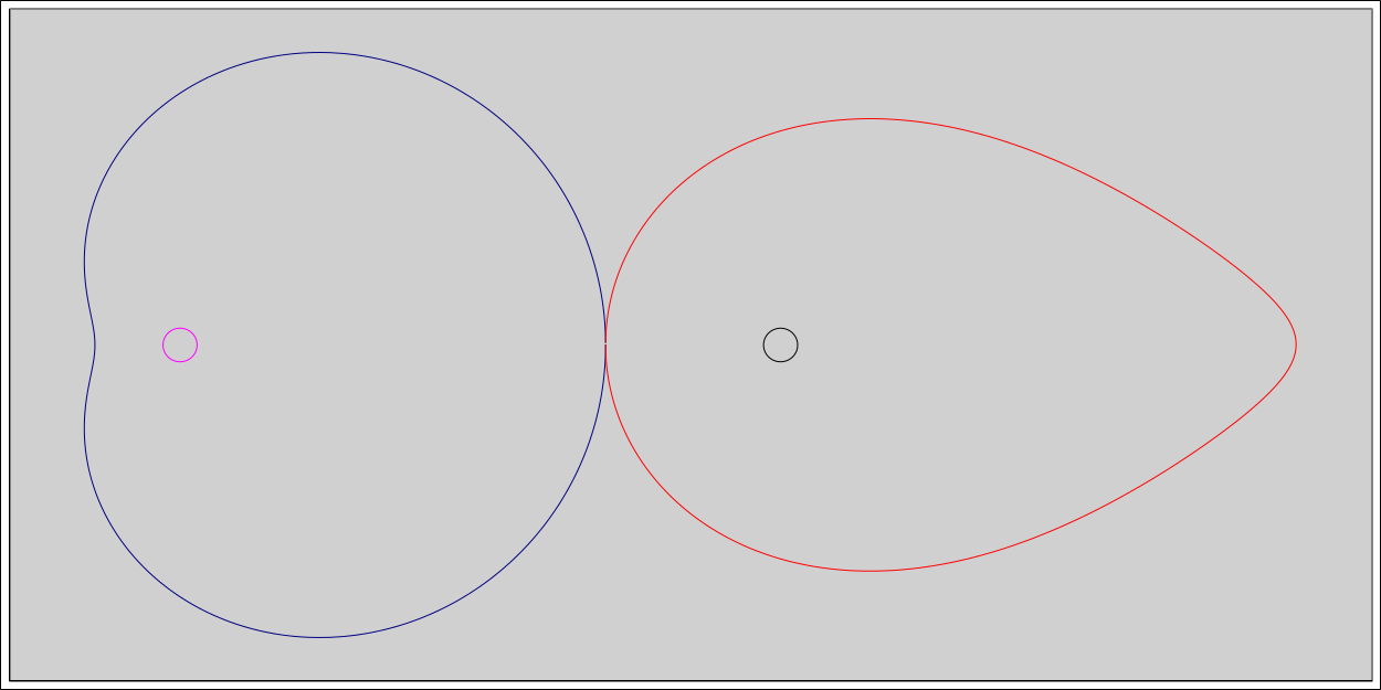 Yeah, the numeric profile generator seems much simpler than the analysis.  The cardioid is 1.5+cos(theta), the egg shape is generated to match it.  I haven't done pressure angle calculations yet.  Are there any other easy checks I can do before making the gears to test them?