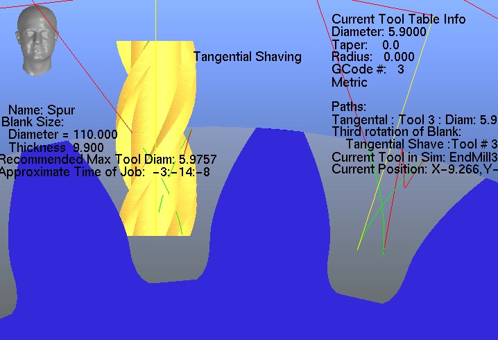Using a cutter smaller than the suggested max. The tool actually doesn't touch the tooth - so the toolpath generated is farther apart from the tooth than the tool's radius. The only way I seem to be able to get tangent is by defining a smaller tool, then it generates the tool path and then go to the tooltable and change the tool diameter to a larger one, without recalculating the toolpath.
