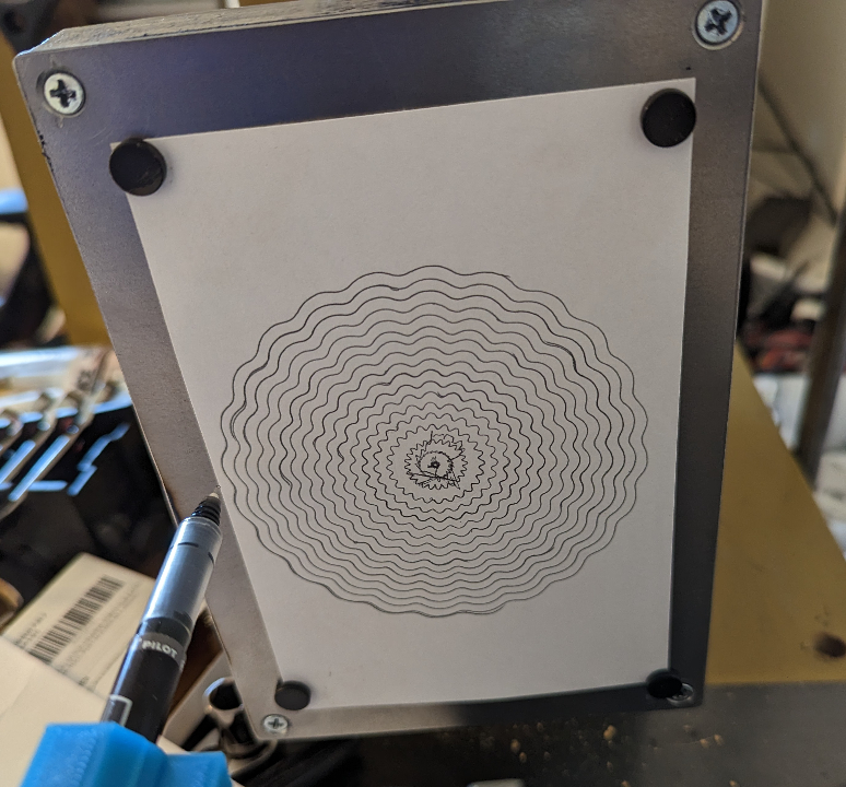 it's rocking and inking! The pen (not the spring loaded holder) is flexing, this is the holder's first use. The overhead drive still needs to be assembled along with some other work, and some cutting bits ground (on an handheld angle driver, very limited shop space here) before chips start flying, but it's progressing