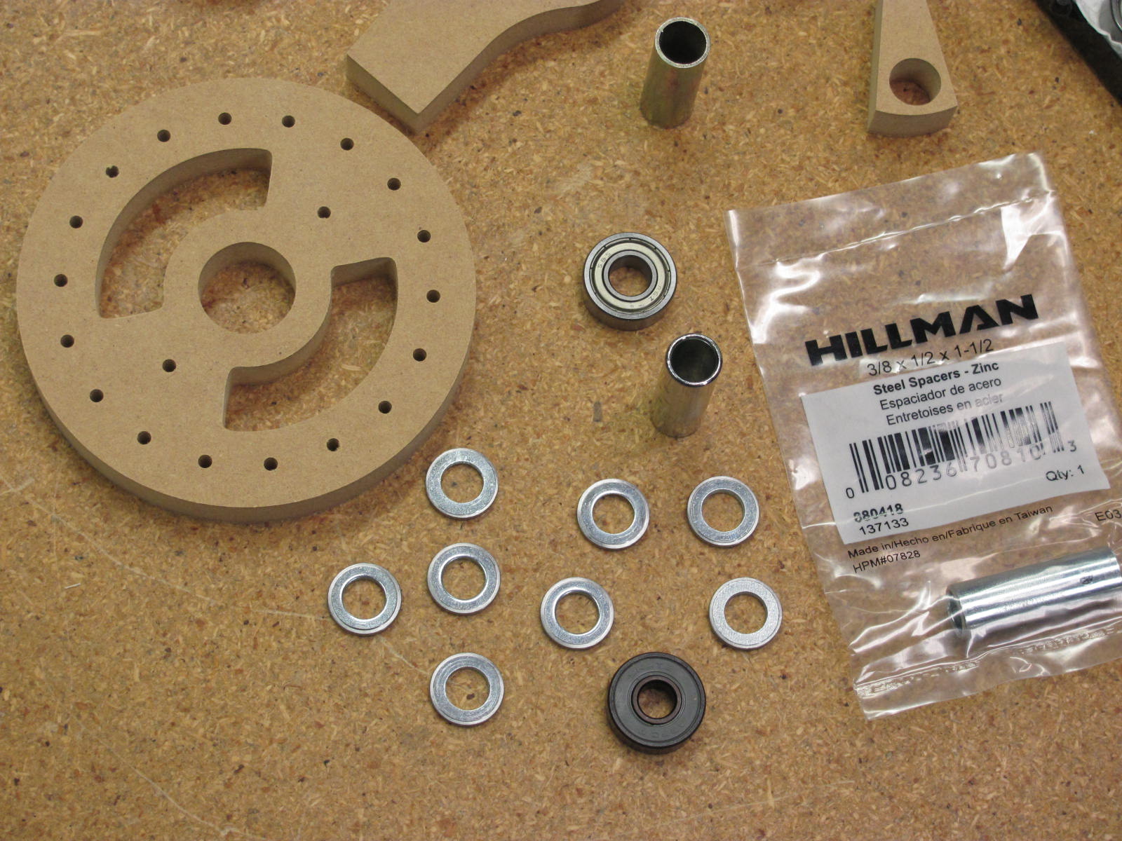 There seems to be a lot of interest in bearings and their importance in kinetic sculptures, clocks, etc. so I thought a new discussion thread with the topic might be useful. Although it is probably obvious to anyone using bearings, one hint is to make sure nothing touches the sides of the outer race of your bearings. I am fortunate to have a lathe so I can machine washers to an appropriate OD by holding them in a jig designed for the purpose. The washer is held on a mandrel with a lip slightly less than the thickness of the washer, the lip is machined to the ID of the washer and the washer is held in place by a screw when turning. Tube spacers are also useful for keeping things properly positioned and allow all components on a shaft to be tightened securely without compromising the reduced friction afforded by the bearing.