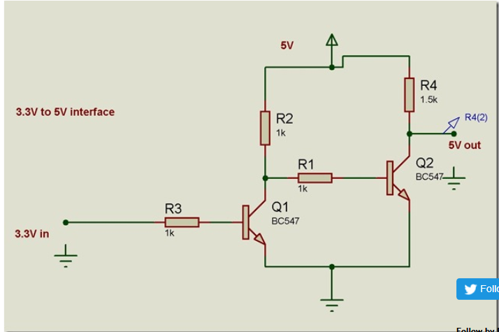 I am using a couple of MPS2222A NPN transistor to get the volts from 3.3v at 100% to 5v at 100%
