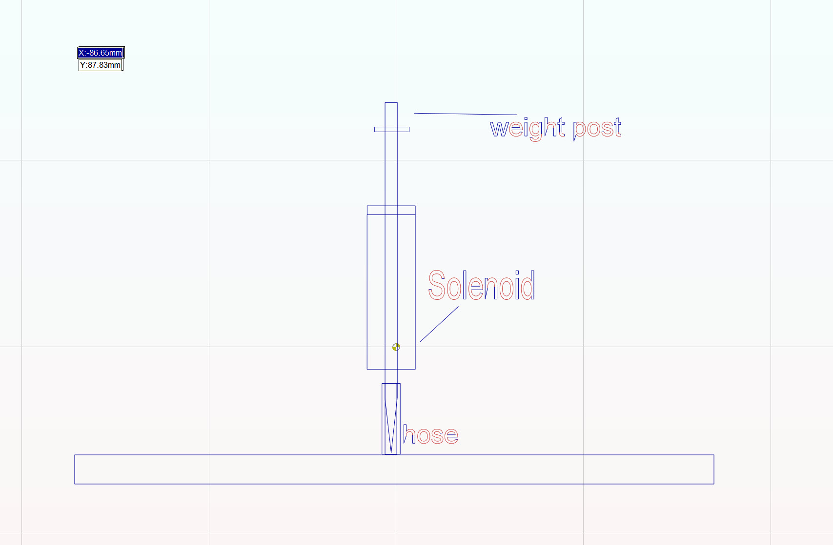 I am a little disappointed with the performance of my electromagnet, particularly after Art has spent time at my request increasing the available PRF range of the PWM signal. I was expecting to get up to 80Hz response from my magnet but have found 50Hz to be the limit and even then I have to reduce the travel to 0.5mm which does not give my expected weight to the impact. Reducing the PRF to 40Hz will allow me 1mm of travel and possibly sufficient weight to the impact but the feed-rate needs to be reduced to about 500mm/min., which is painfully slow. Unfortunately everything is a compromise.