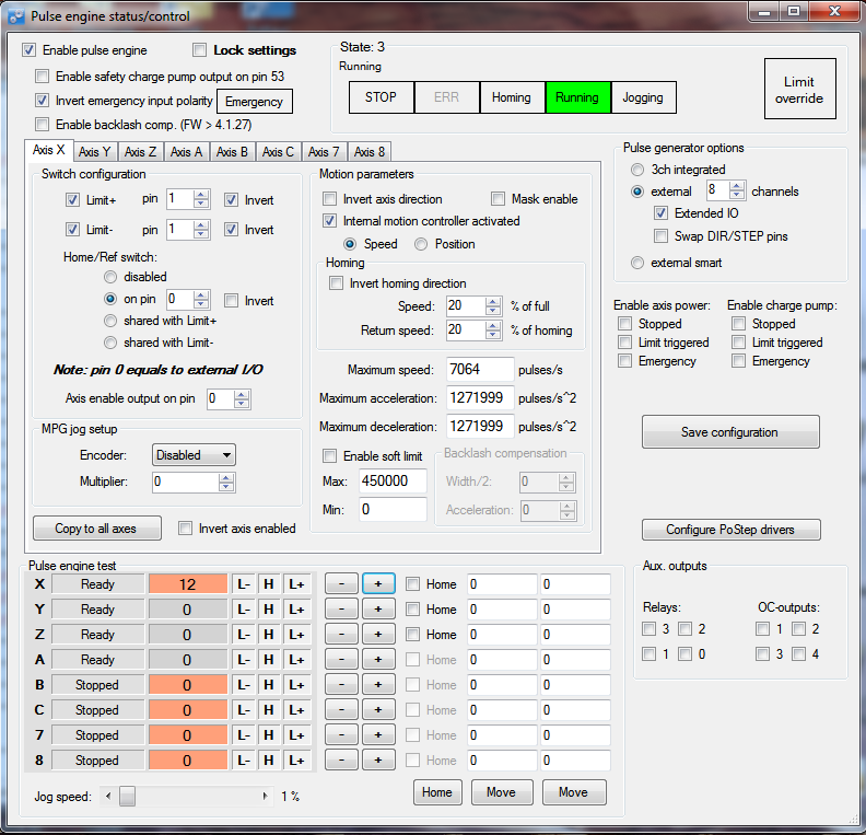 your pick helped a lot, thank you now I just need to work out how to set the limits and home switches through the test IO port.