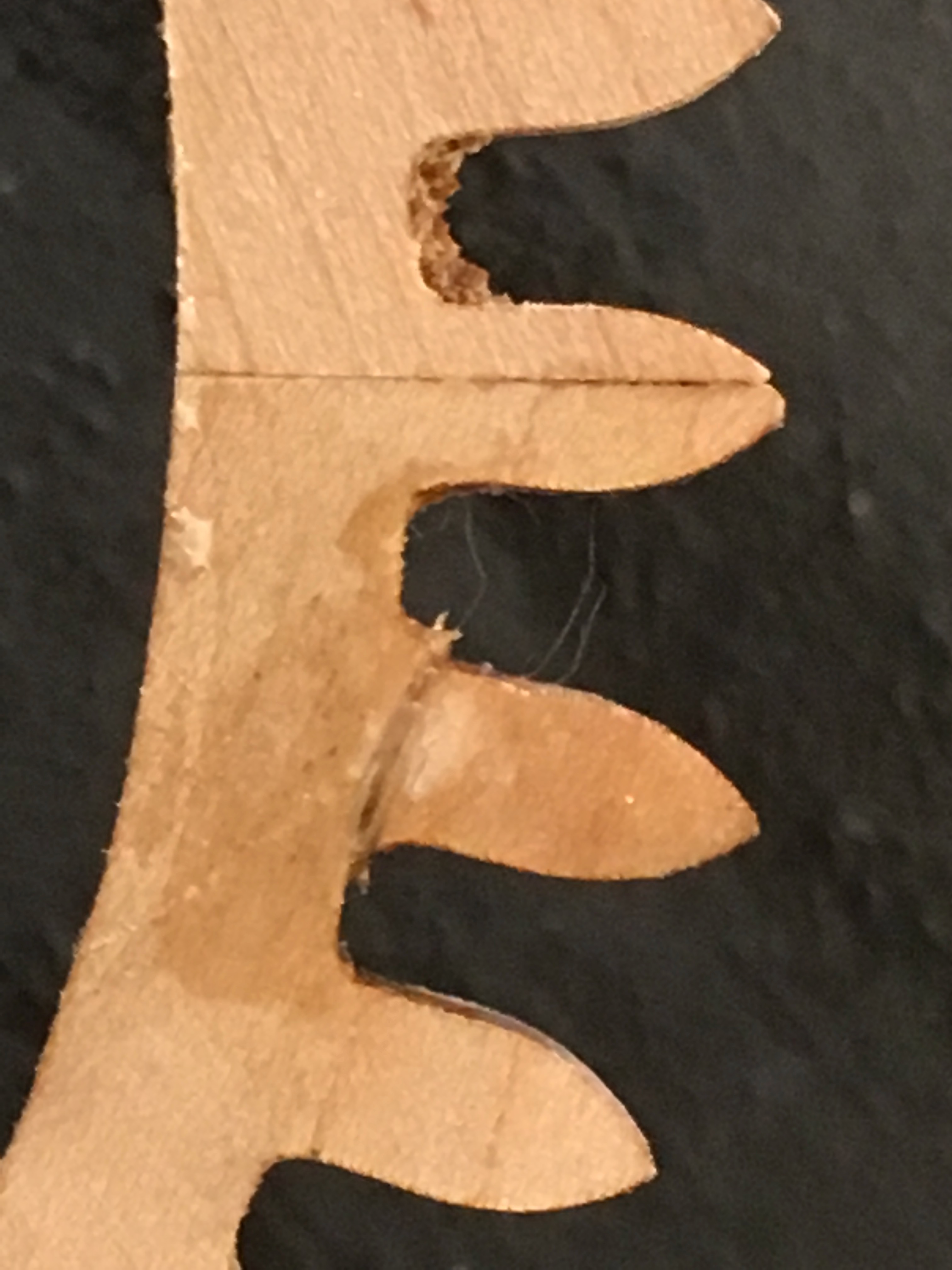The gears are cut from a glued up segments that aim to have the grain of the wood run radially (not the case in the broken tooth). Unfortunately to have all segments run their grain radially is hugely wasteful of material - OK if you have a surplus of hardwood - unfortunately i didn't.