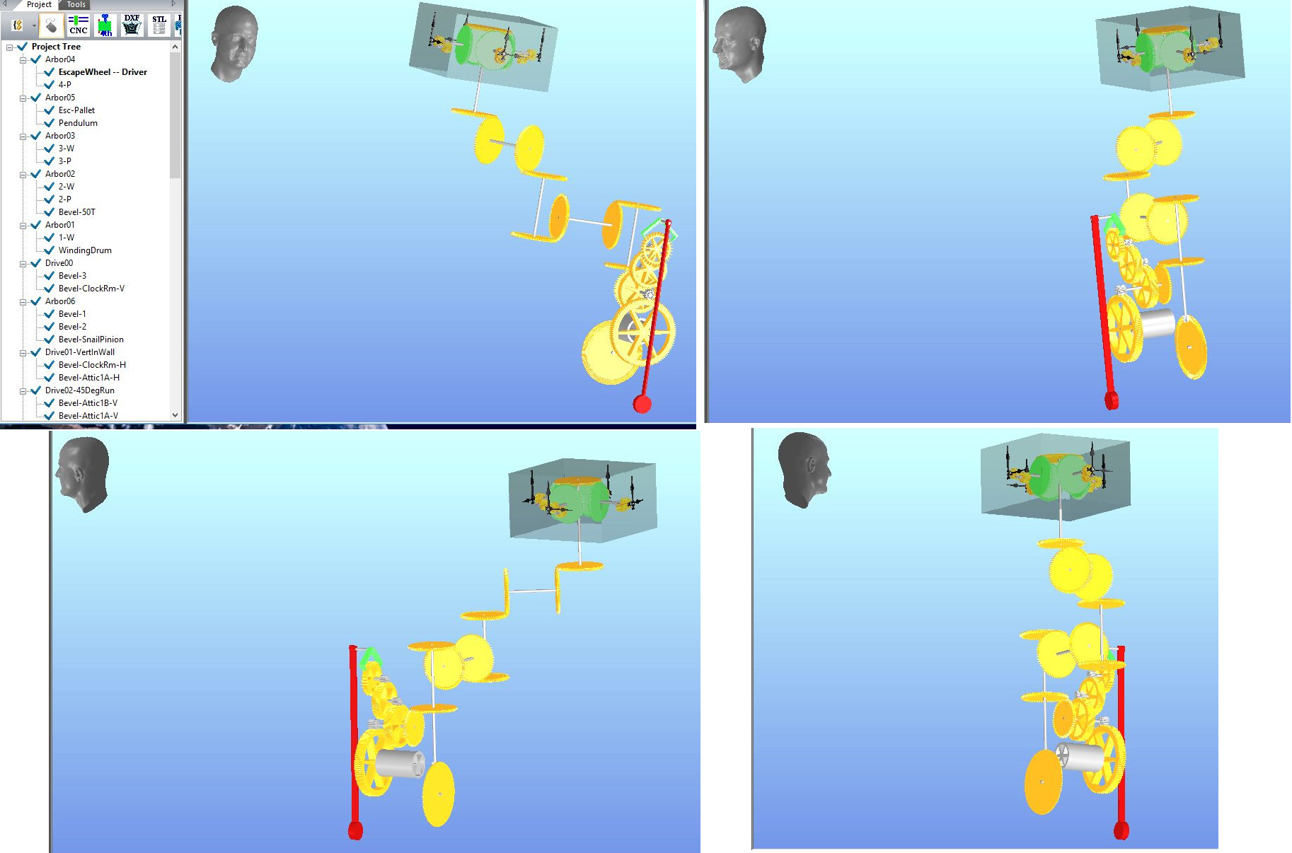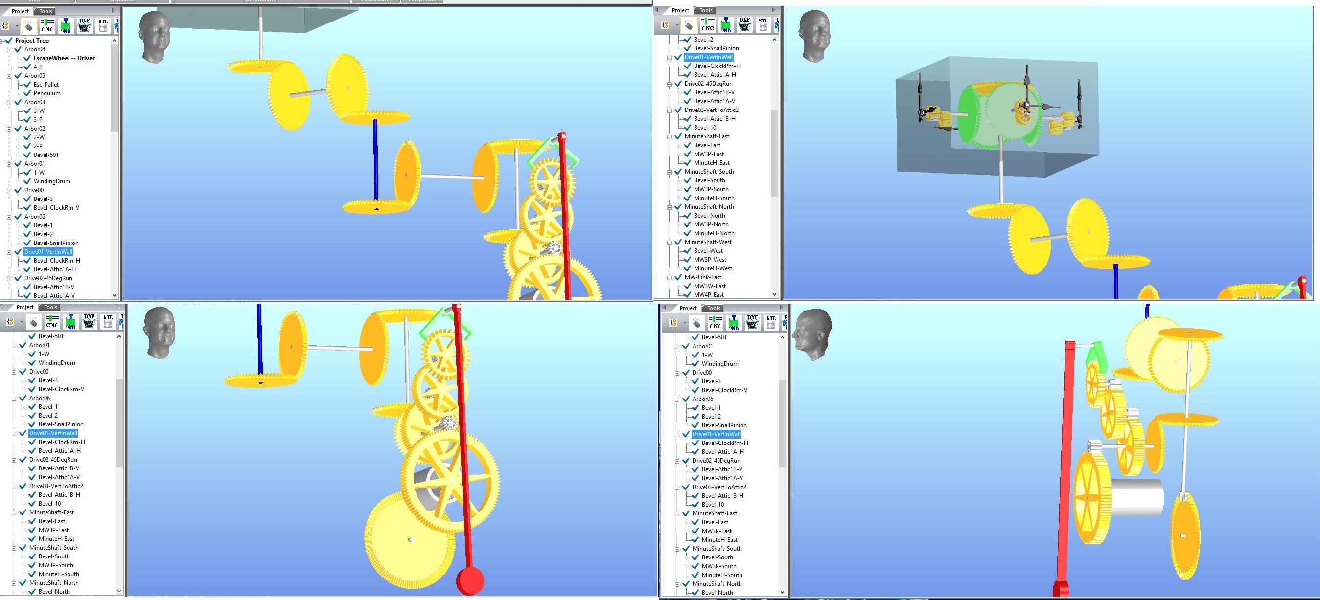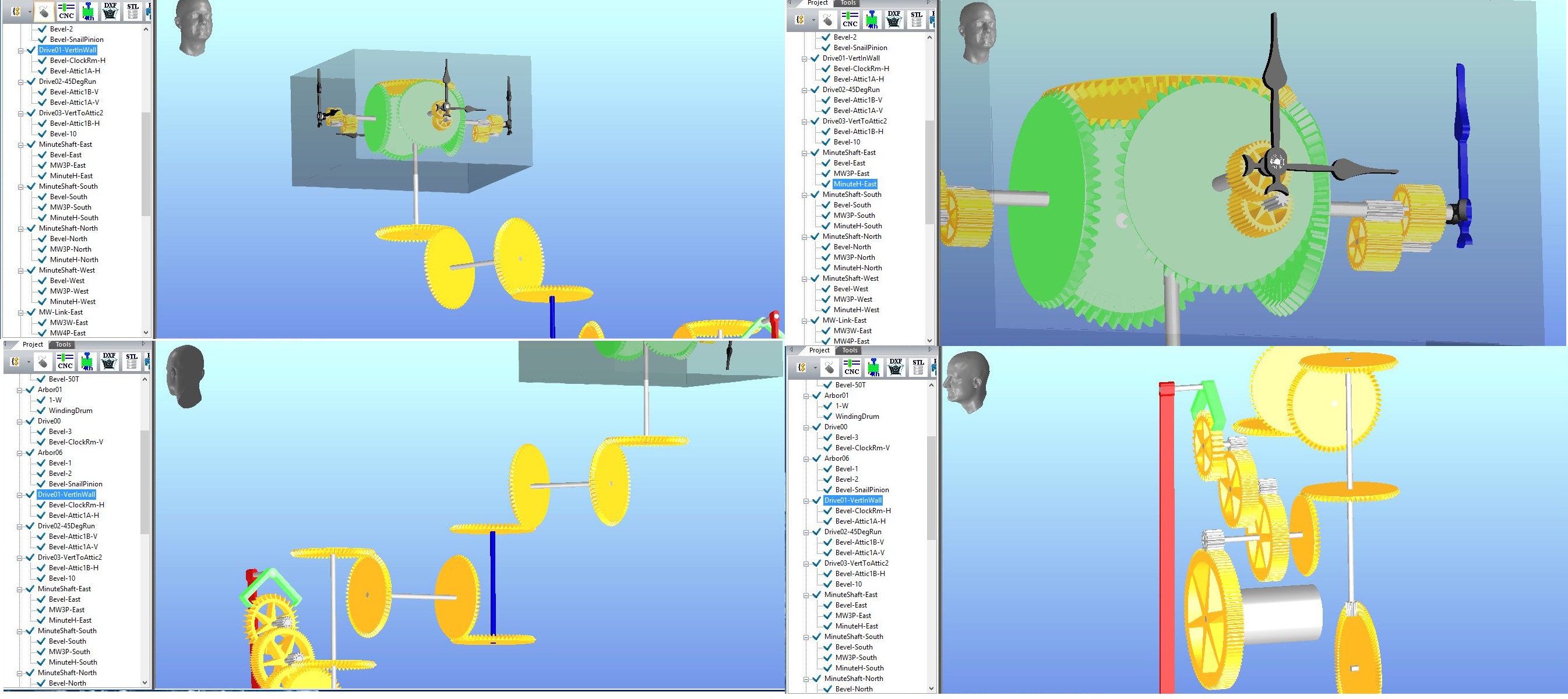 Thanks for the info. Attached are jpgs of the Tower Clock simulation that I'm working on when I stumbled across the additional anomaly with the reversed bevel gear.