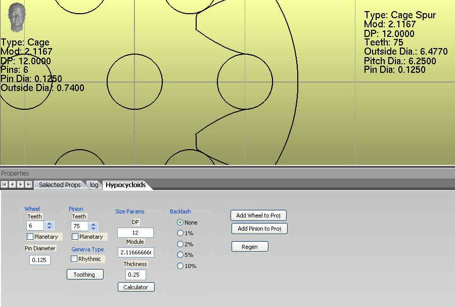 I've attached a couple of screen shots which show the backlash but there is no tooth width options for the cage