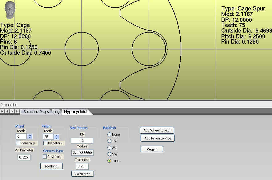In the Cage gears, backlash shrinks the pitch circle of the hypocycloidal spur, it does