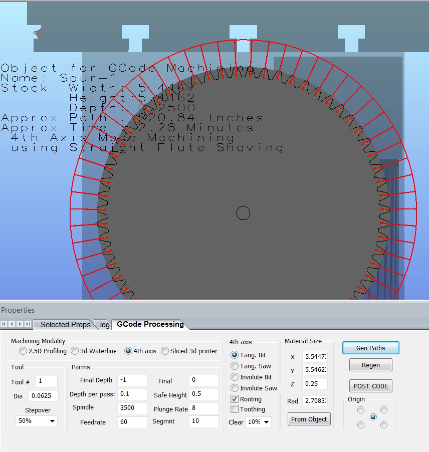 When you do gears with many teeth, the toolpath shows on top of the tooth, doesn't seem to hurt anything.  (See screenshot).