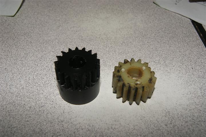 I'm using a .0375D EM. The blank is .944D and there are 17 teeth. I looked under a magnifying lens at the old gear and the new gear does look thin. The information I have is that is the correct diameter and the CNC portion of the program doesn't have an issue with the .0375D EM The root measures at .070 which is more than the cutters width. It seems like the program is making the root wider than the bit and thus is thinning the teeth. While it's difficult to measure the old gear teeth at their widest point is ~.092 and the new gear measures ~.072. So you think I should increase the diameter? How much should I increase the diameter? You best guess is fine.