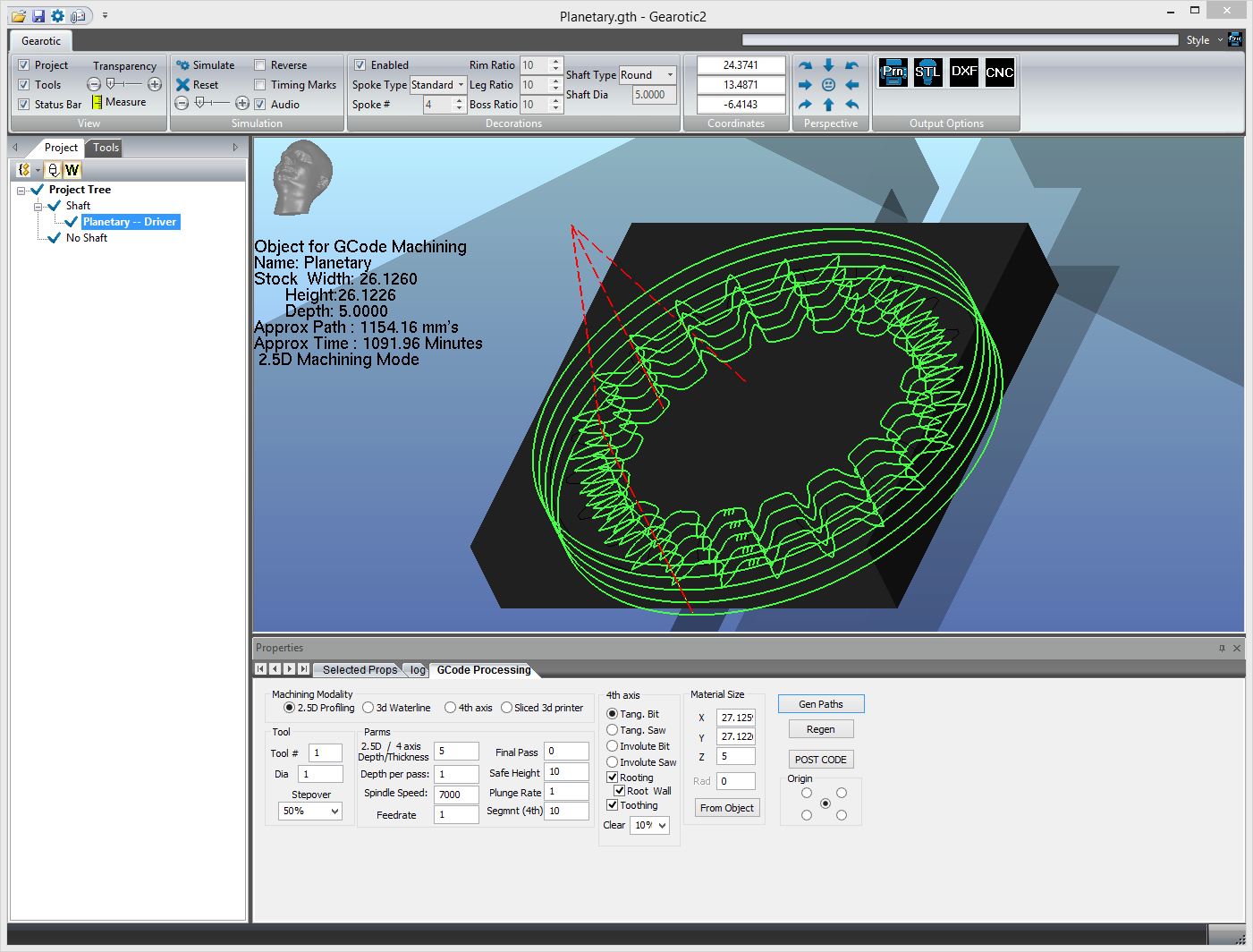 I am trying to design a planetary (inside) gear and GCode output as follows: