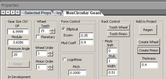 If I create a non-circular gear with a large mod. clef.  0.9 it creates nicely on the tools screen but does not mesh when put onto the project screen.