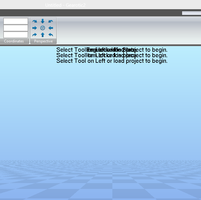 I can load an existing project, which again shows a black screen. I can click on the screen and get the check pattern. If I use the middle mouse button, I can then view things.