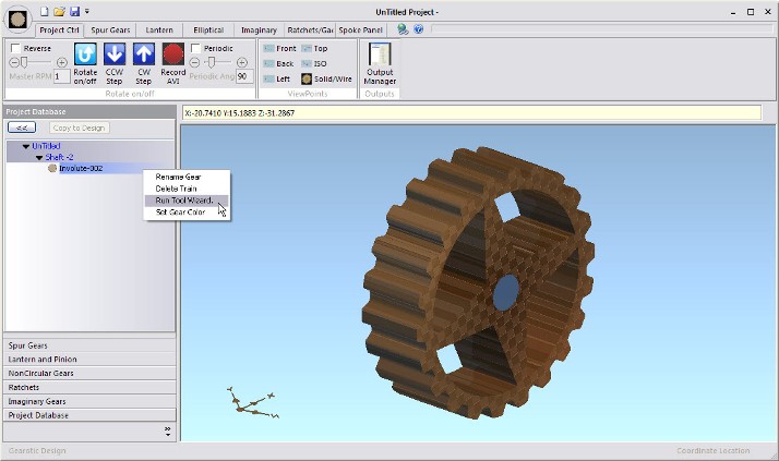 After generating a gear, right click on the gear in the project data base tree on the left. The option for running the tool wizard for selected gear will be there. See Attachment...