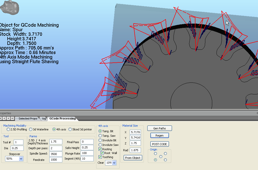 If I rough a spur in the 4th axis from the top, works perfect, when it goes to do the tooth shave it acts like it is using the saw.