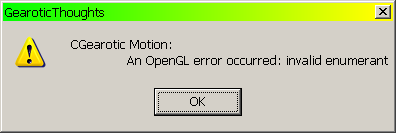 I recently got myself up and going with the latest release of your awesome GT program. On my Windows7 pc, all is well. But my shop computer is a linux OS (Ubuntu) that I use to run EMC2 to drive my machines. To avoid running back and forth between the house and the garage (aka my shop), I have VirtualBox installed on the linux computer. In VB I have a virtual WindowsXP sp3 install that I use to run all manner of programs, half of which are too old to run on Windows7. So I plan to keep the old XP going, at least for now. Anyway, GT installed into the virtual XP with no problems. And it seams to start and come up fully. But then, before I can do anything, I get the error dialog (see attached). And it is one of those deals where it will never go away, no matter how many times you click the OK button. I can only escape by killing the whole thing with 'end process' through the task manager. I imagine my setup is not common. But just the same, is there a fix?