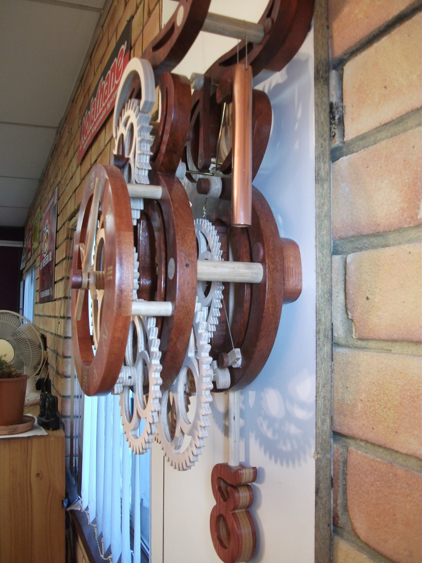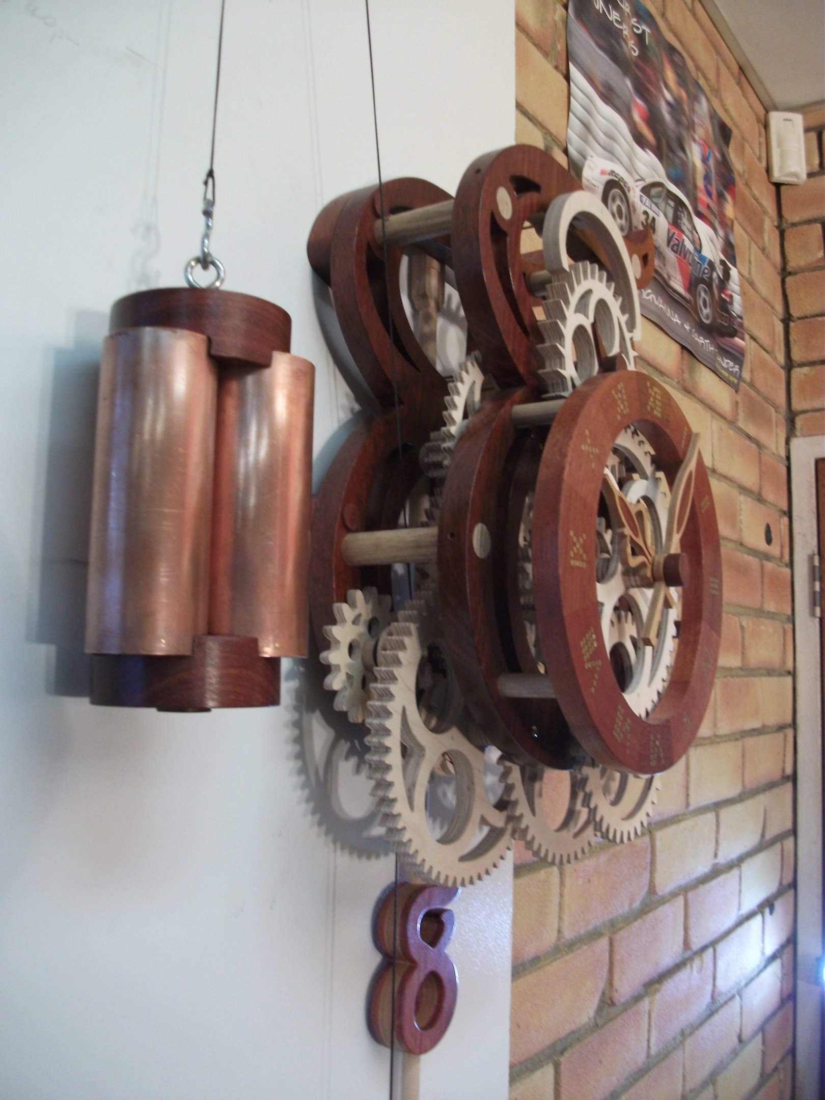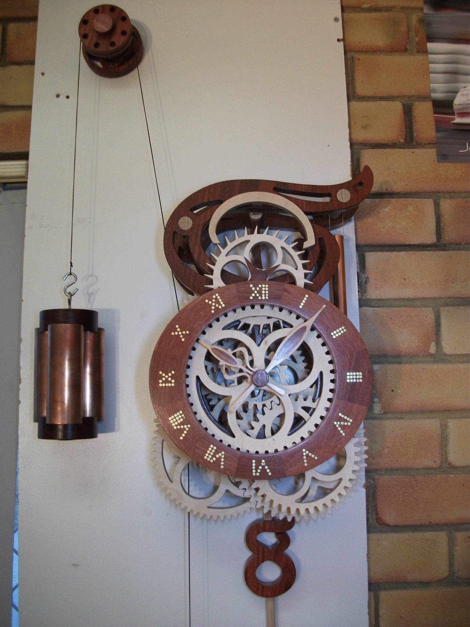 I used a separate pulley instead of a doubling pulley under the clock, as per the original design, as the wgt required would have been frightening!