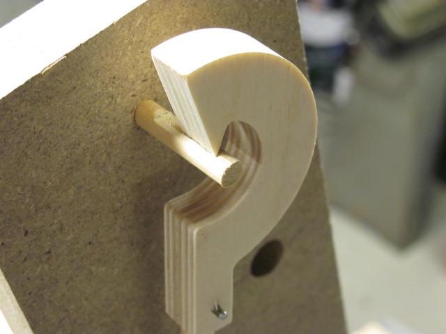 Probably not new to many experienced clock makers but I'm a newbie so I'm excited to share some of my successes. I made a pendulum bob and a pendulum pivot modeled somewhat after a Clayton Boyer design. The pivot is a knife point and the bob is weighted with lead shot or BBs. The pendulum support is simply a 1/4" wood dowel with a flat filed on it and then a shallow V-groove cut into the flat. I set this thing in motion with about a 3" swing (6" side to side) with a 48" pendulum length and it was still going after a half hour with no additional input. The bob is adjustable with some threaded rod and the brass tube in the bob keeps the ballast away from the pendulum when the adjustment screw is turned. Now, if I could only figure out how to keep this thing going with the pallet using a crutch. If anyone else has some photos of how they did it, please post on this thread.