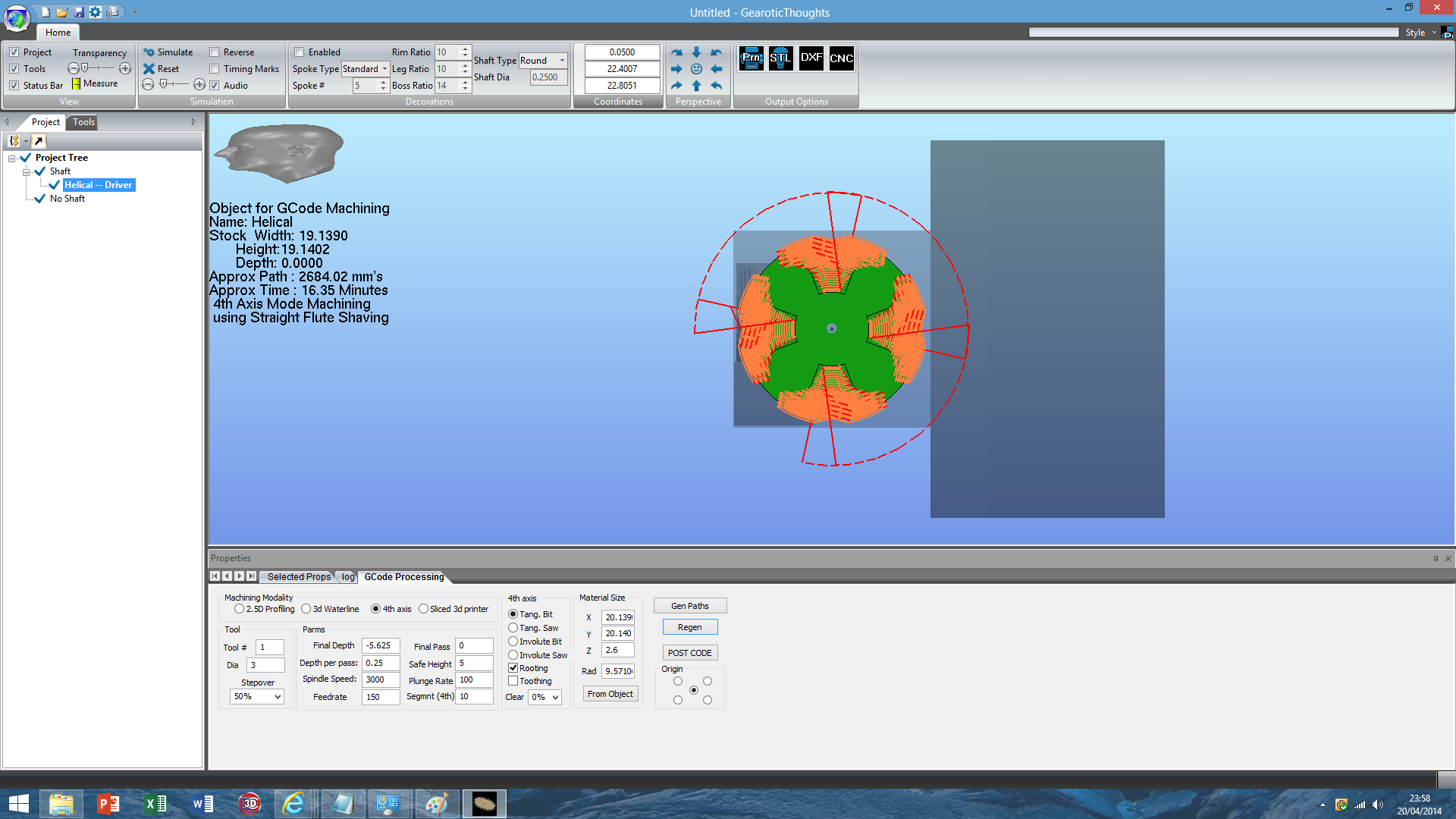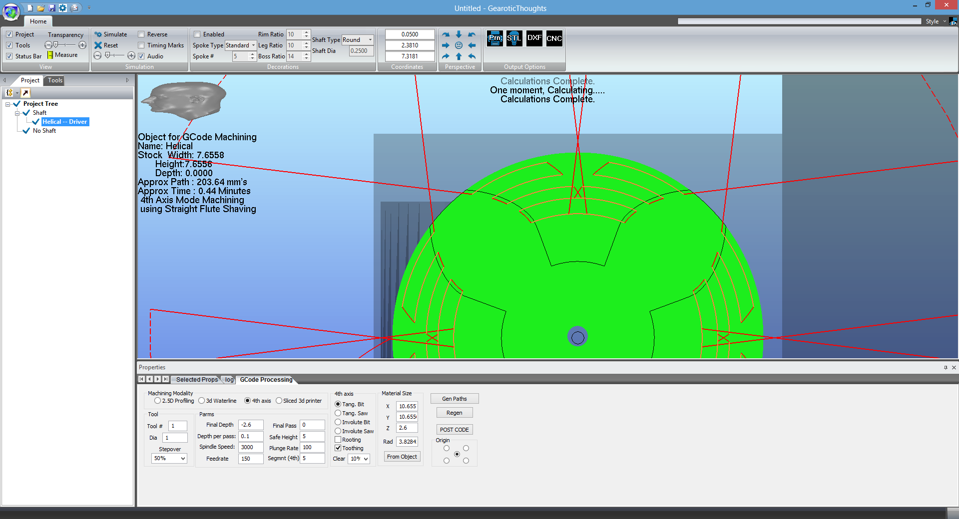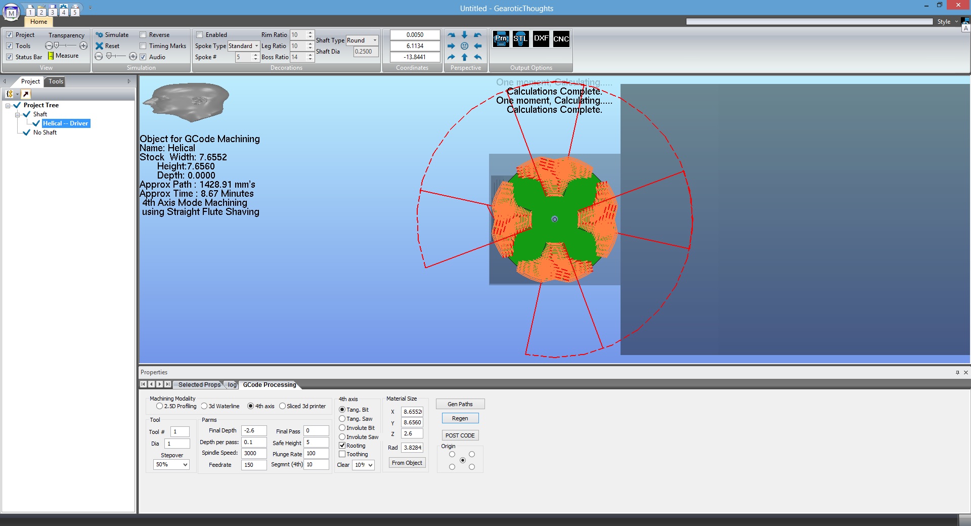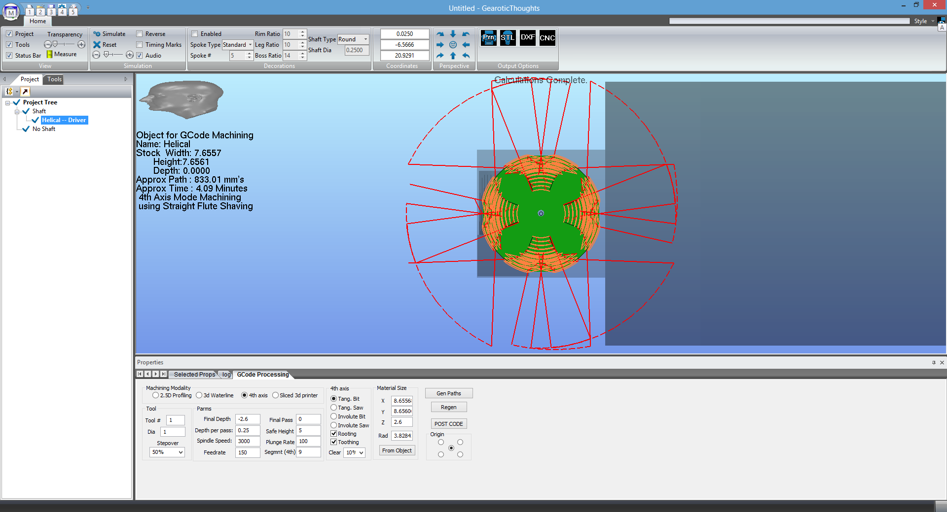 Hi Art, I'm still not sure what you mean by "save the project" I have attached the summary, I guess that should be enough. It's a M1.0.  I think any module, 4 tooth, helical involute gear produced by tangential shaving will show the same rooting error. I used a gear thickness of only 0.1mm so that the error is more easily seen.