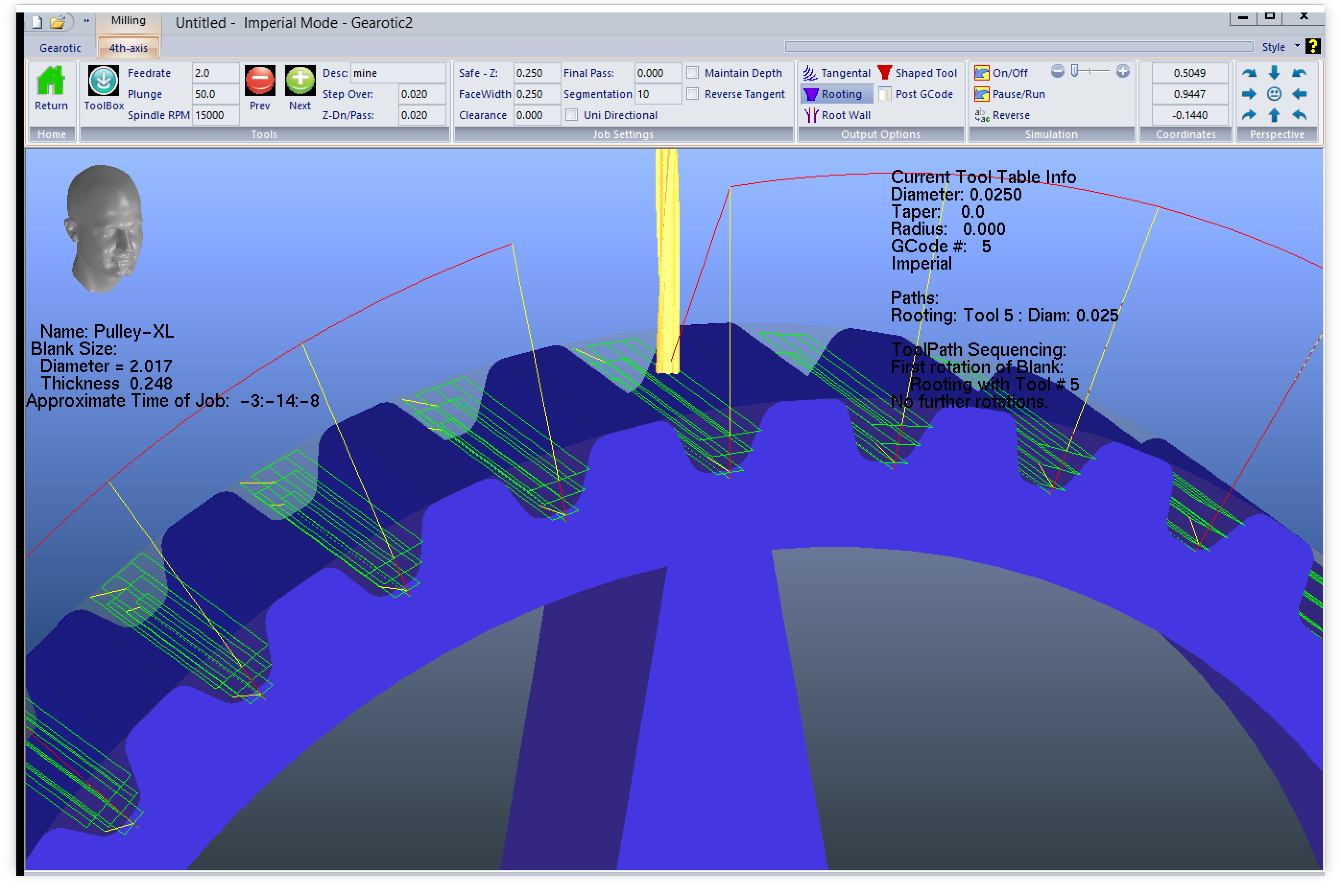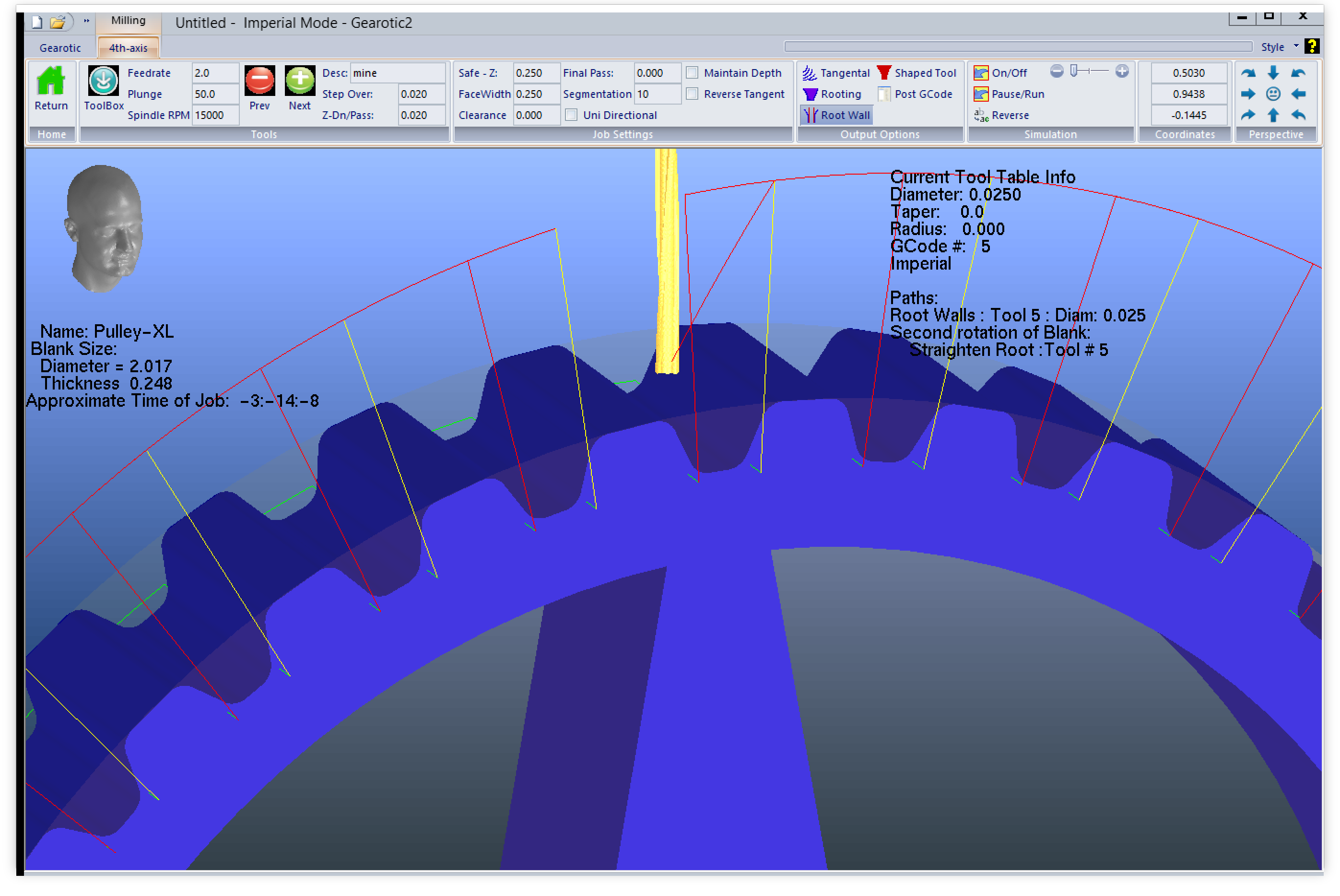 But generally, ignore tool size warnings in 4th axis with pulleys, the tool size calc is done