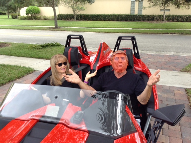 A photo of some guy with my wife in my Turbocharged SlingShot SL.
