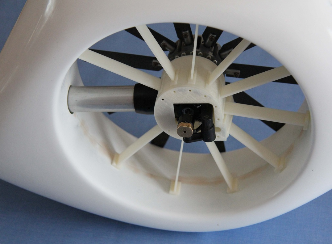 Here are some pictures of the mechanics I am thinking about using (the drive shaft version), and a scale fenestron rotor assembly similar to mine.