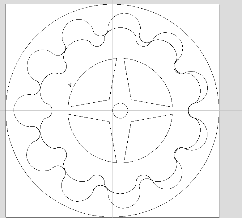 Yesterday I laser cut a 10/1 ratio lantern and pin  gearset. The pinion has ten teeth and the cage 11 with a .68'D shaft ( the bearing was added just to see how things would rotate but will be removed on the next cut)and .5 pins. I modified the pins in my cad by 1/2. The picture shows the tooth profile but it doesn't look like the hypocloid shape that I have seen elsewhere.  It does rotate and seems to perform like a hypo  but would like your comments.
