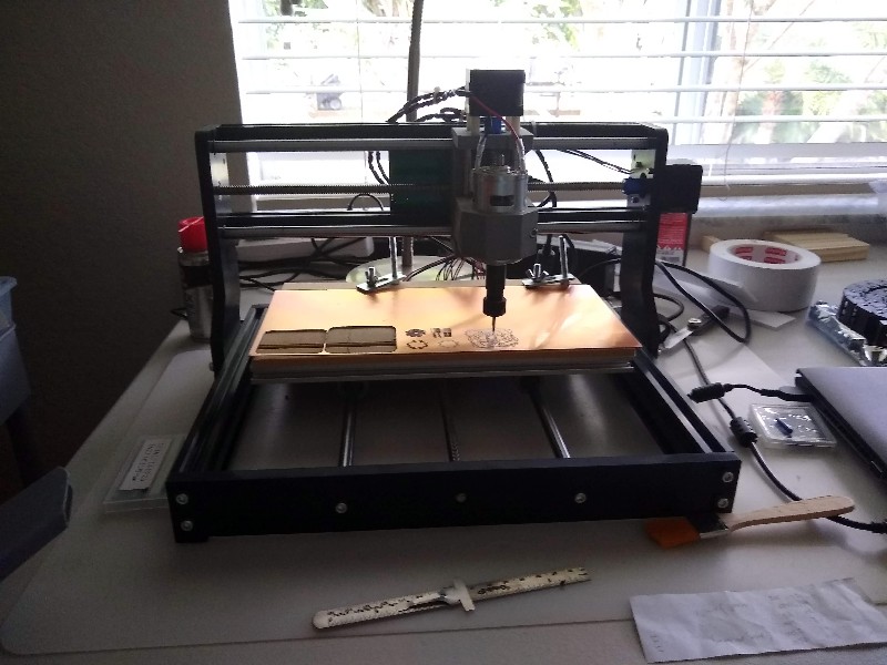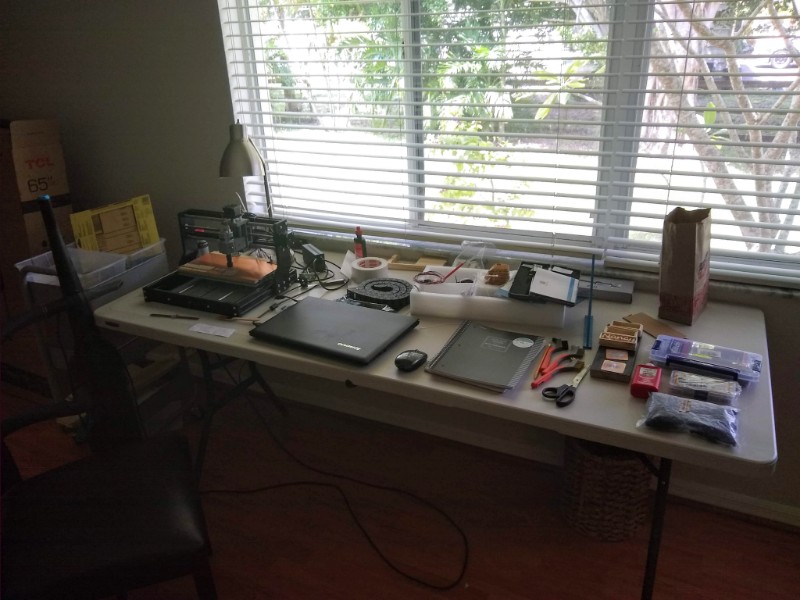 I think the table, lamp, supply cart, and misc stuff cost more than the router, maybe I should have gone for the 3040 4th axis with an 800w water cooled spindle and set it on some milk crates (around 30 came with the house, the PO was a lawyer and had a big 2x12/milk crate shelf setup for his legal files that we had to disassemble)