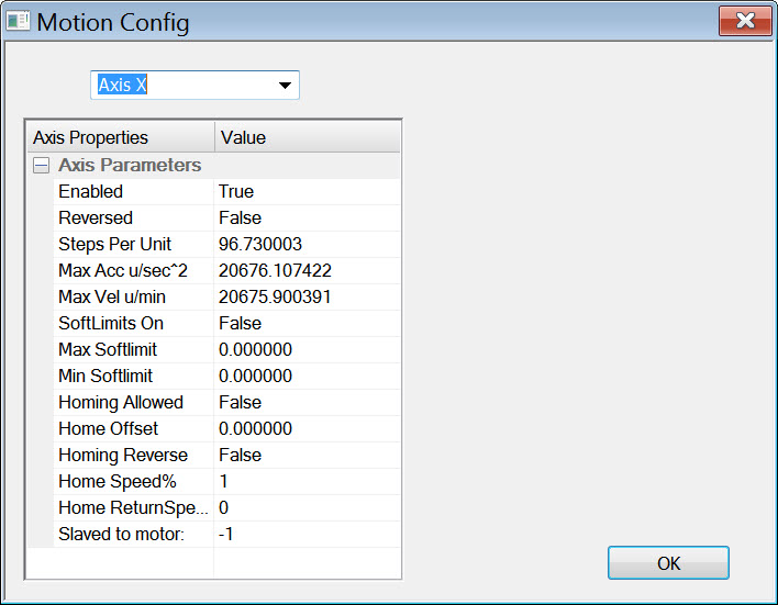 Auggie, under the planner configuration there is a page for each axis. You set the number of steps/mm and the