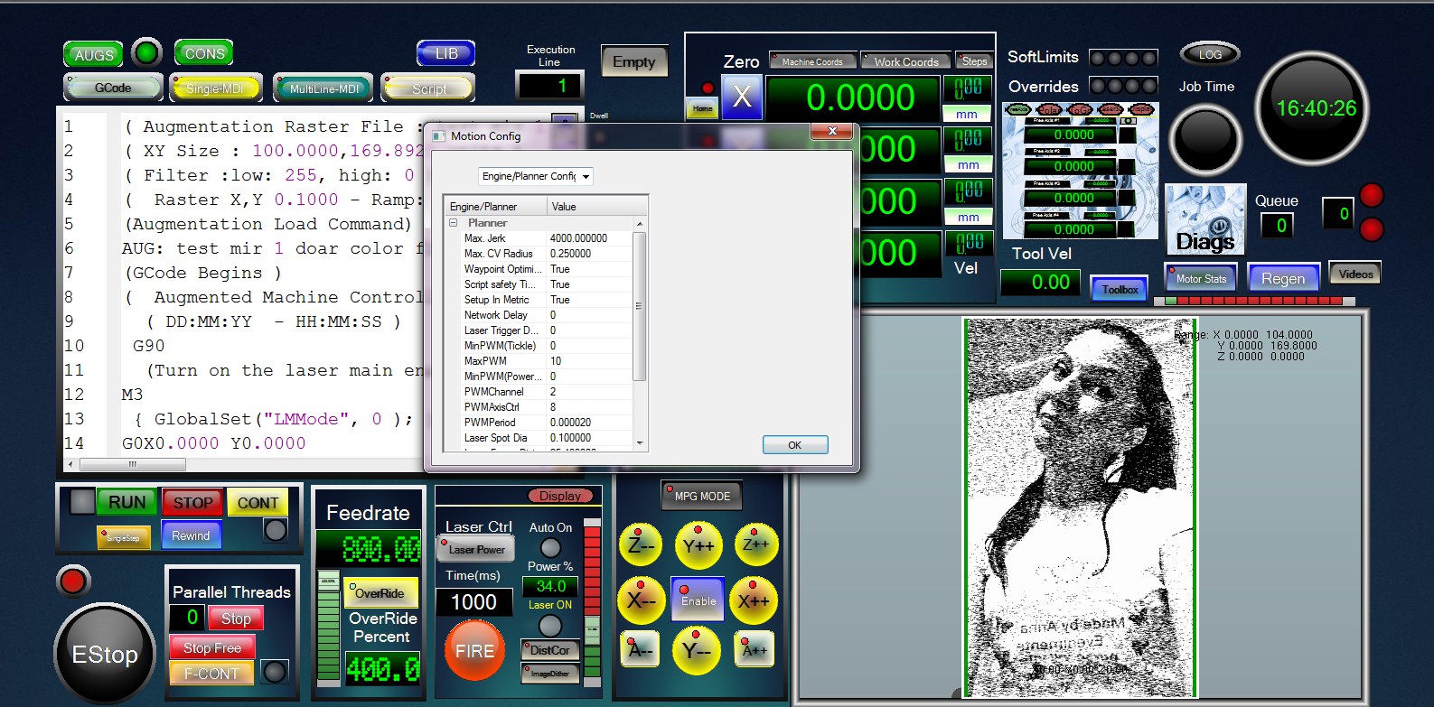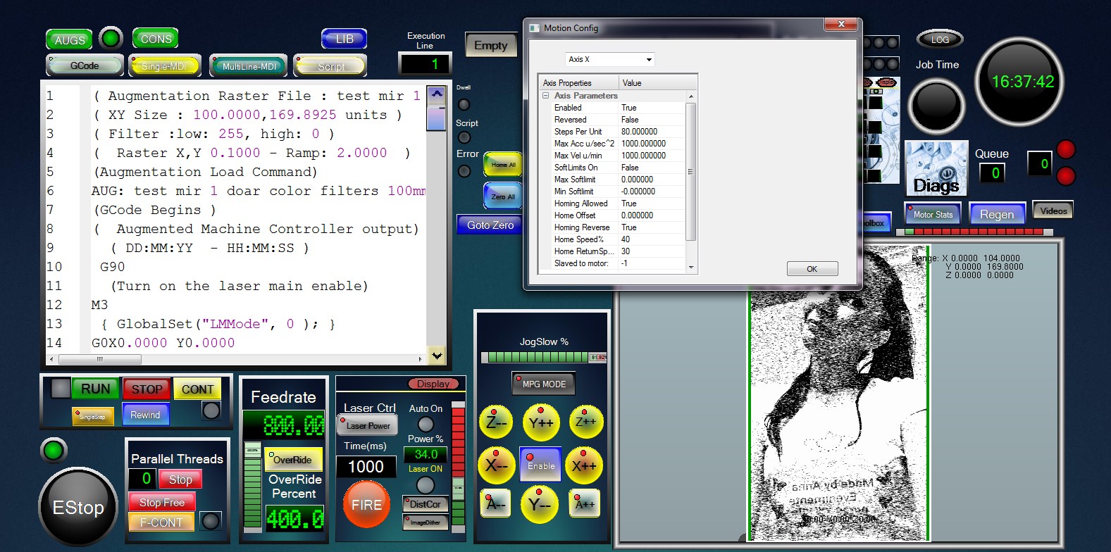 And about that step per unit the perfect move at distance is "80" at my laser , edited in engine config in auggie. If i increase speed in pokeys , and i start auggie again , my machine will move faster but with different move distance . Auggie normal ask me where to load config , auggie or pokeys . What i shoul do in that situation ? Is my motors drivers configured wrong ? Sry , but i don't know all that stufs.