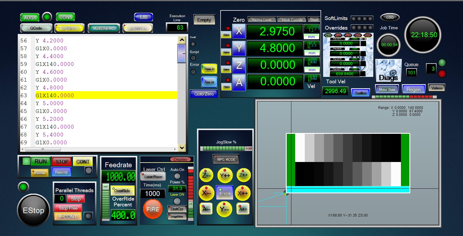 So to set speed correctly if you want to go as fast as possible, set the feedrate to 50000, run the program with