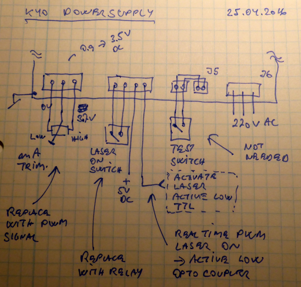 My power supply is a real Chinese Style, open and have few markings on it. Earlier I did some measurements and wire following to get a schematics of the inner working (hand draft attached).