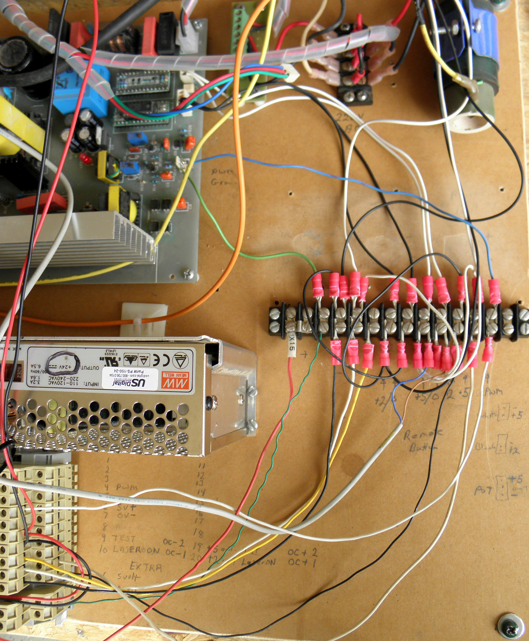 Here is a view of my wiring on the laser board, I tried to label the connections, but it turned out to be quite straight forward. That is other than the pot plug had to be removed for the pokies pwm to control it.
