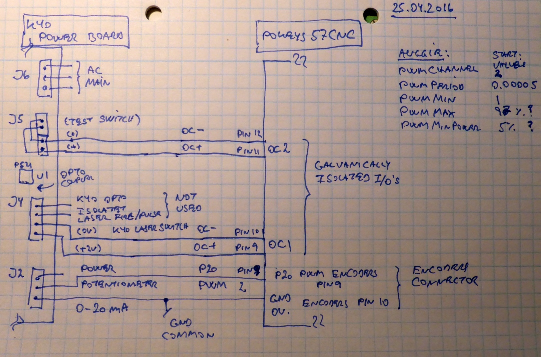 And then the pwm test connector art showed in my photo above was just connecting my choice (Pin22 PWM2) back to the center tap of the pot with a common ground from both laser and pokies boards.