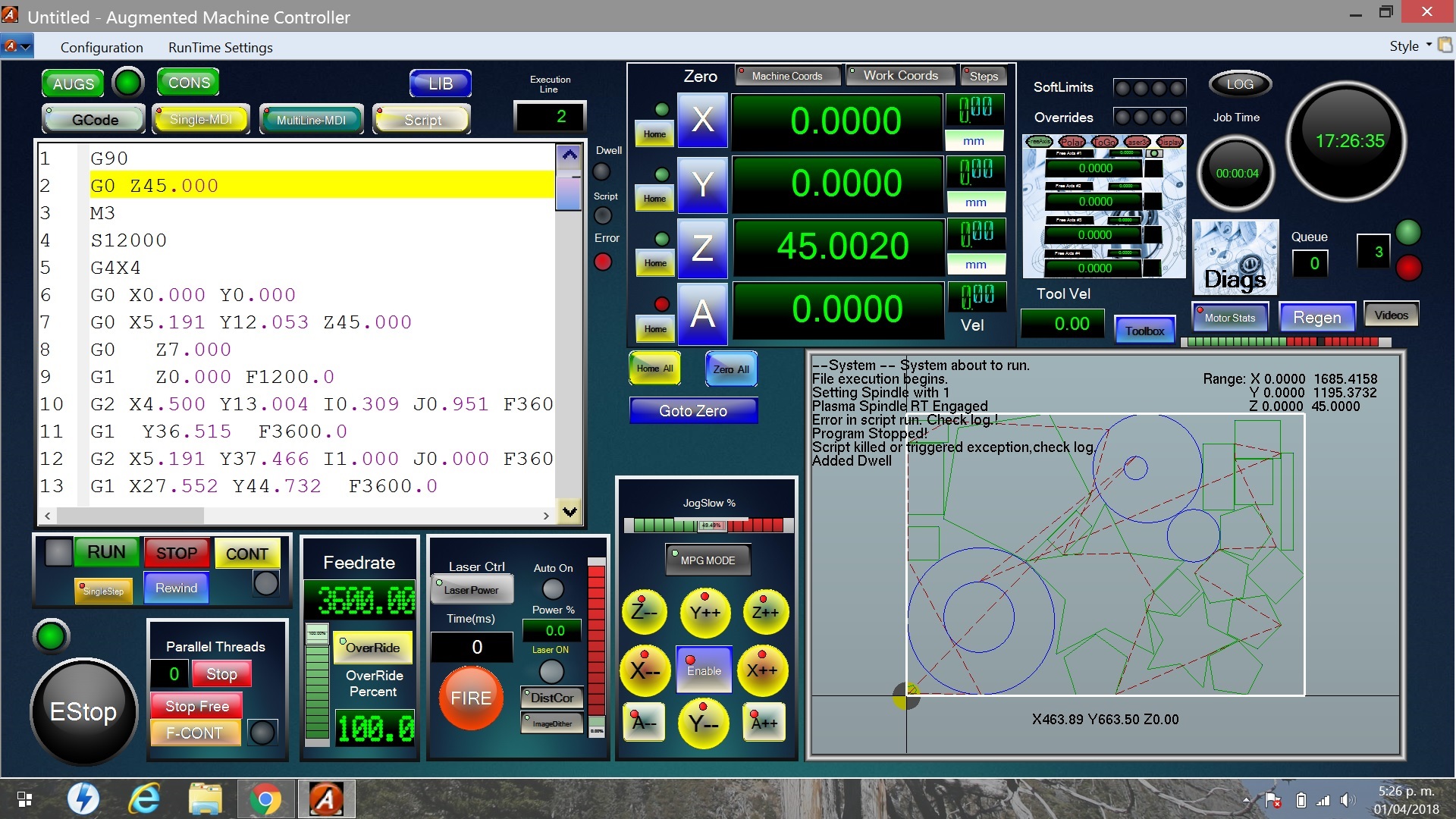 yes sir, I have it activated but when I load the code g and start doing the movement, it locks up when it finds the M3 code. and create a new script only with the option to turn on and off plasma with relay # 3 and it does not work either. Here I leave you the scrip that you wrote and the error that appears when the machine finds the M3