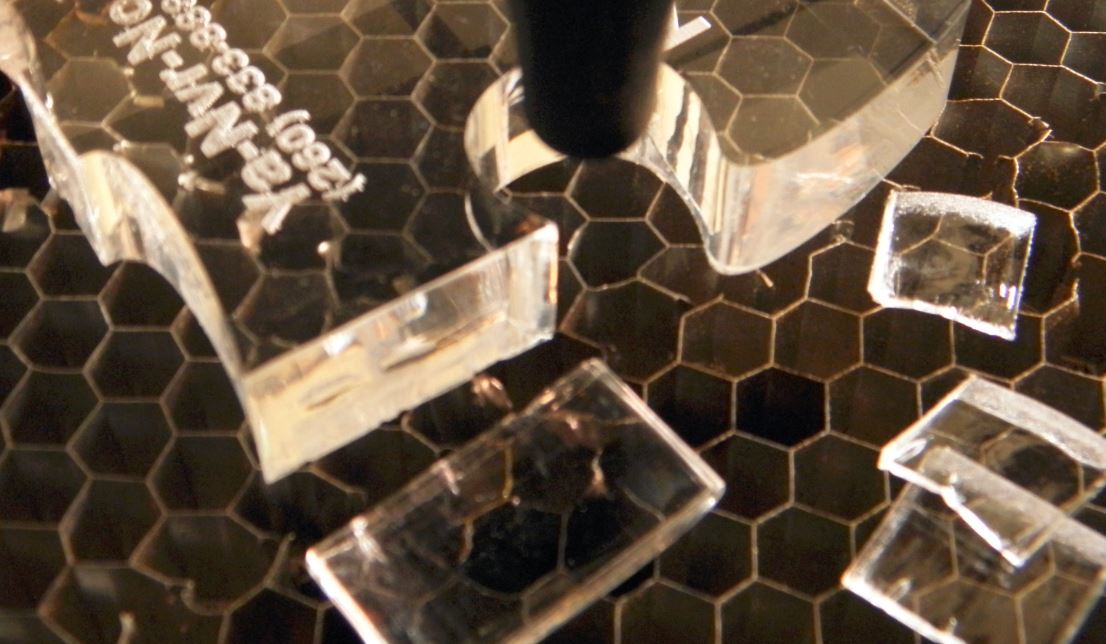 Did some testing today on acrylic cutting, the material is 0.473" thick. Photo shows the results of Feed 2"/min @ 100% power, no air assist (as it seems to cause a cloudy pattern at the top of burn) But the slower I go the clearer the burn. A feed of 1" was much better. Love the samples I picked up at the recent NBM sign show for my testing.