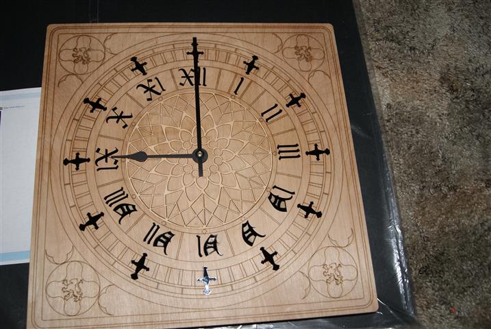 I finish making my 14" version of the tower clock that I previously posted. The numerals and pawns are black acrylic . The center section latice is a white maple veneer inlay. the rest of it was engraved or cut out using my laser. A real fun project. I hope to do more inlays with various other wood veneers.