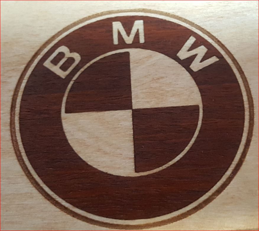 2) Flip and reverse image and burn into a piece if 1mm veneer to 3/4mm deep ( picture shows result).