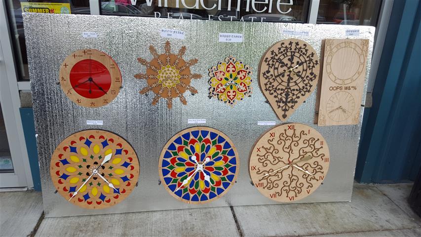Here is a picture of the display of clocks that I had at the art walk yesterday. I got a lot of comments saying the clocks were either beautiful or unique. Alas I did sell any of them.