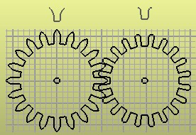 The pinion leaves are rounded and the wheel leaves are pointed. The curves are taken from a specification