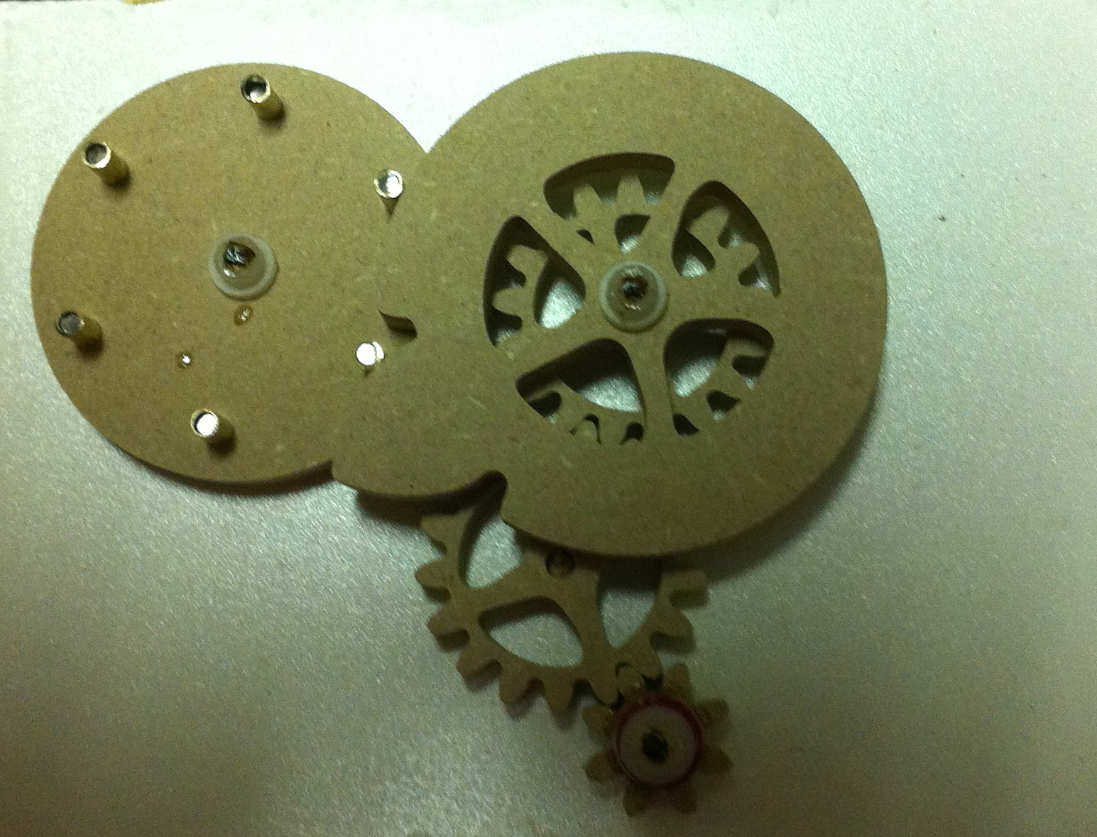On the little set I've made (fit on a 4 by 5" mount) I've had a problem of the pin just bumping into the Geneva and not sliding down into the pocket. I've "carved" it out until I get the motion (slides into pocket) but obviously that's not what was intended I'm sure.