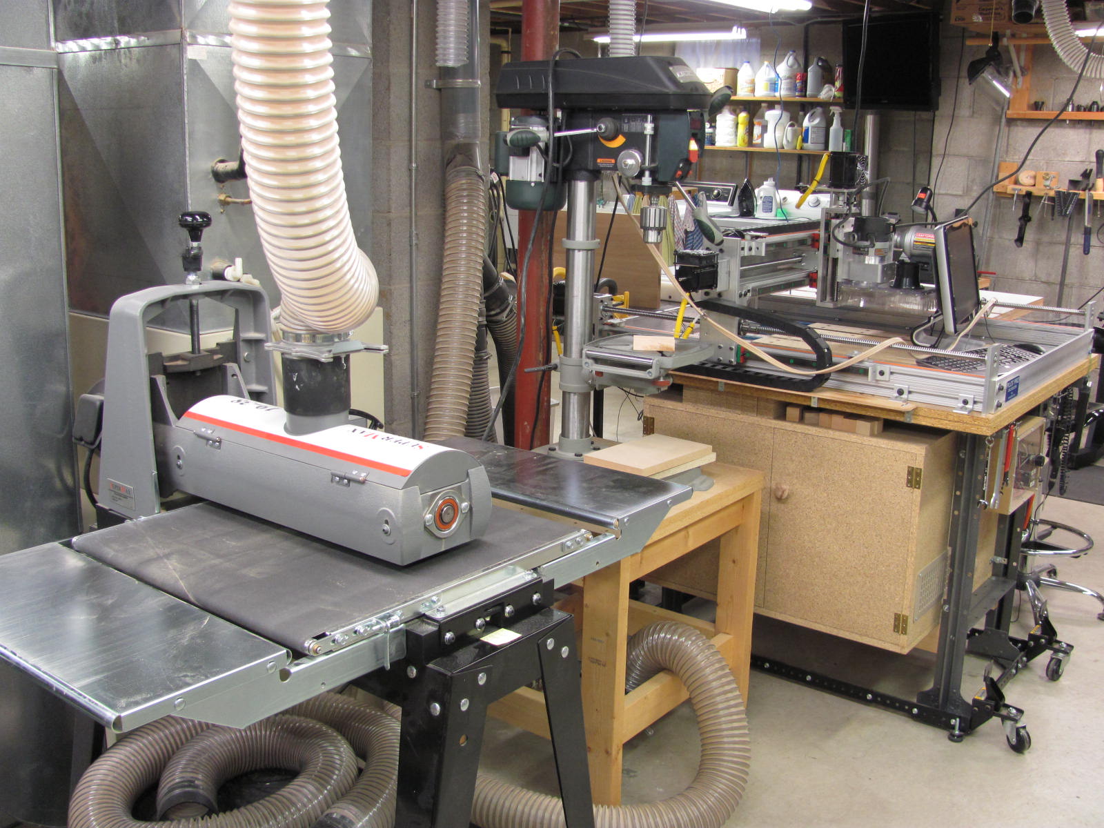 You opened a can of worms asking about my shop. Others have commented on it from time to time so I will give you a little pictorial tour. FYI, my shop is not overly neat, it varies depending on the state of my work in process. I will probably have to post over three messages due to the number of photos. Since I have limited space (don't we all), most stationary tools are mounted on wheels and I move them into a clear space as needed. One thing for certain, I have a very understanding wife!