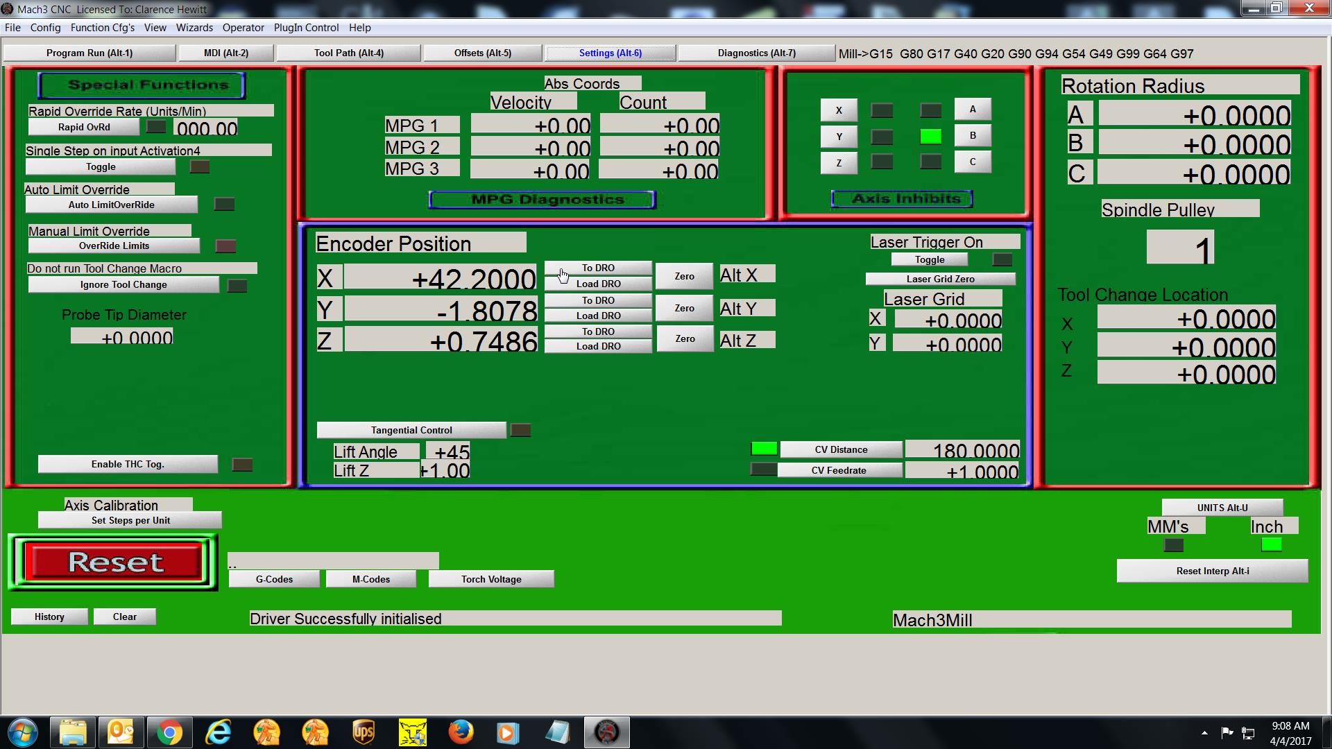 In expanation, if you zero the Z at the center of the 4th axis, you can allow m3 to determine radius is equal to Z,but if you zero on a gear, you need to put the radius in that dro so m3 can add it to the current Z so it