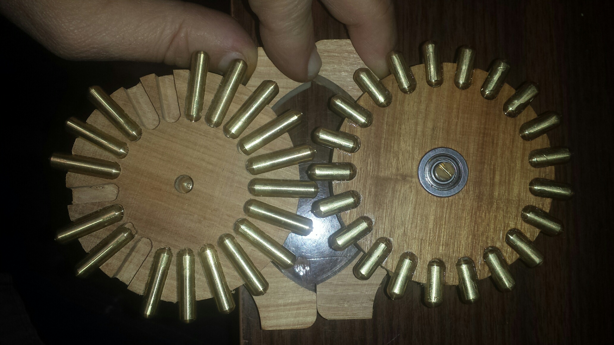 brass pins with a rounded end. This makes spherical teeth. The pitch diameter (the point at which