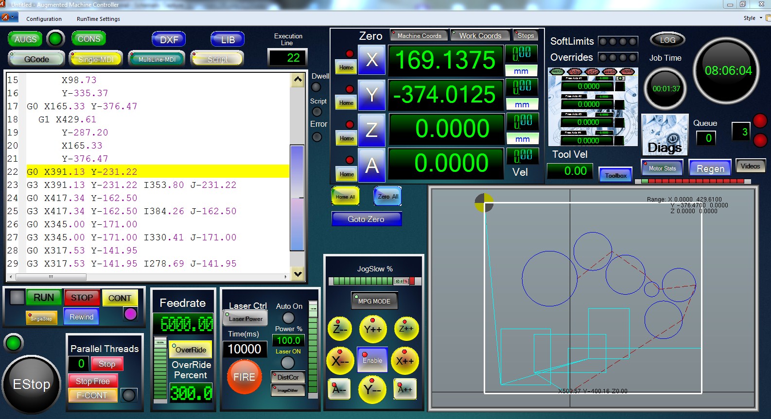 Anyway , seems to be good , i made some test on a simple square in Auggie of course, and look very nice (without cut it, are not all the mirrors placed ) , and i saw the auggie calculate the laser power according with speed and velocity on corners ,i attach a photo.