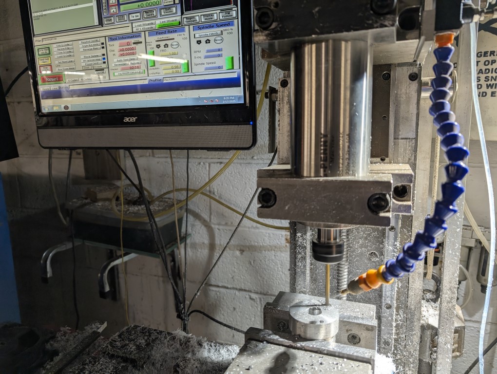 The shaft for the vanes was not spinning well and the problem was both poor bearings and some misalignment. I'm remaking the frame of the scimitar to make it more rigid (laser cut acylic is a beautiful thing but large sheets are prone to warping under load.) I also turned and machined an aluminum bearing hub for both the vane bearings and the bearings supporting the weight that drives the apparatus.